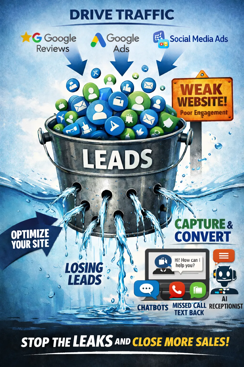 Drive those leads to a Smart Website that engages with them 24/7 saving you money and time.
